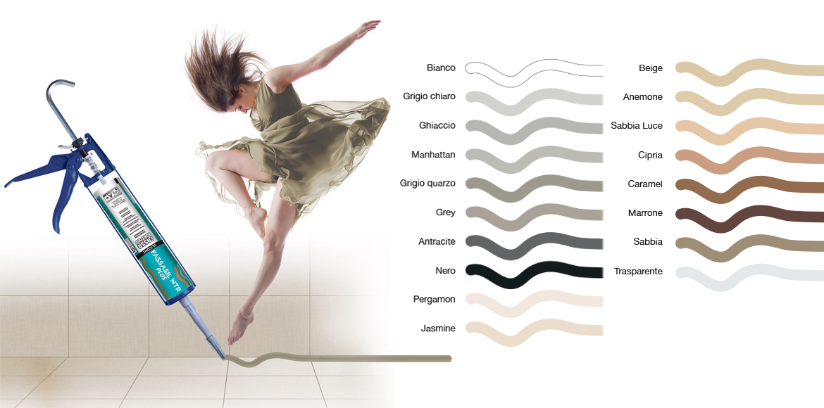 FASSASIL NTR PLUS, sellador de silicona neutra, no corrosivo, de reticulación alcoxi, de bajo módulo elástico protegido contra el desarrollo de un amplio espectro de mohos y algas, para juntas elásticas entre vidrios, metales, cerámicas, cemento, plásticos rígidos y madera.