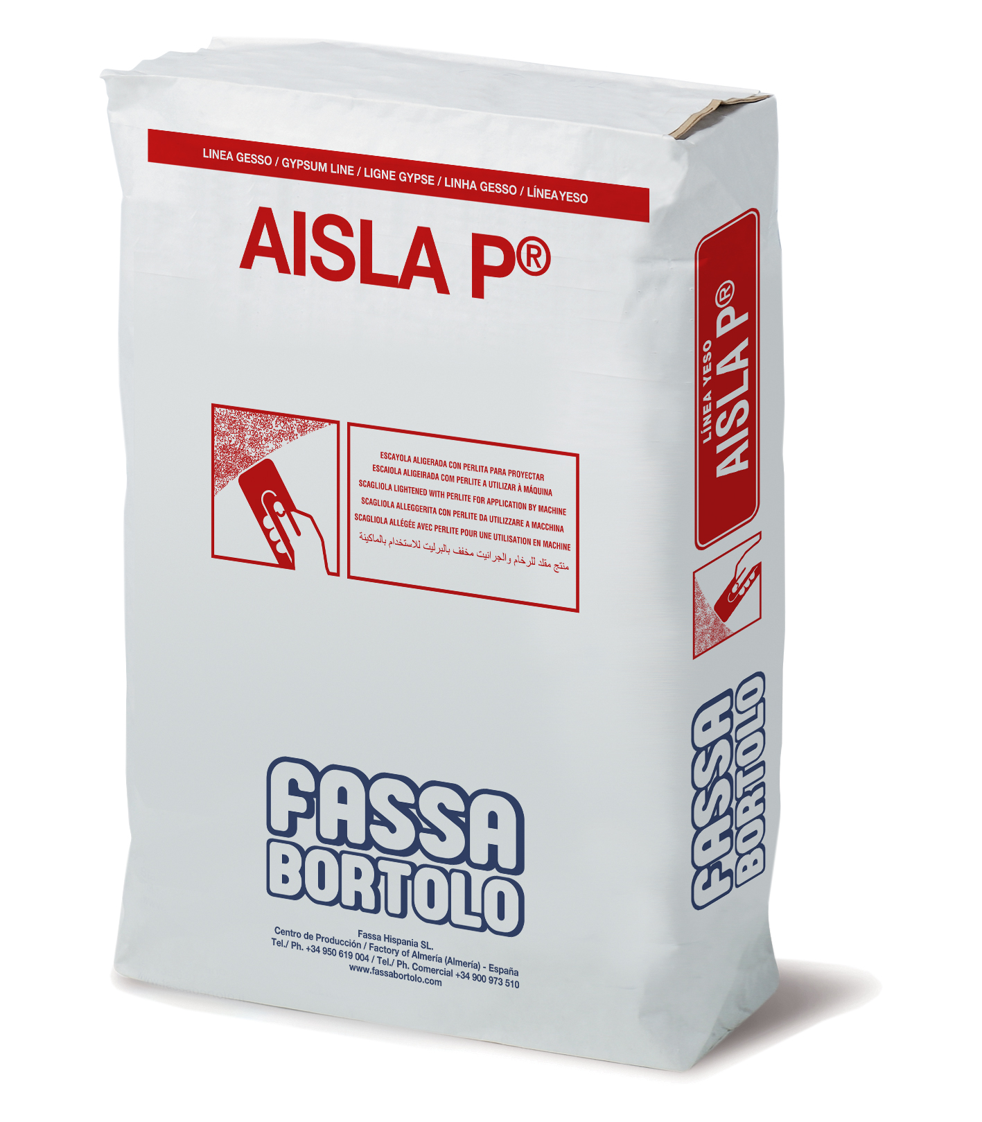 AISLA P es una escayola para proyección a máquina, aligerada con perlita, utilizada para la realización de guarnecidos en interiores sobre paredes de ladrillo, bloques de hormigón, hormigón en bruto, etc.