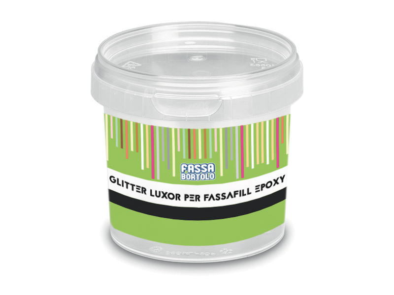 GLITTER LUXOR se utiliza mezclado con FASSAFILL EPOXY para obtener un efecto cromático metalizado o perlado donde se requieren efectos decorativos especiales, valorizando y aumentando el brillo del recubrimiento.