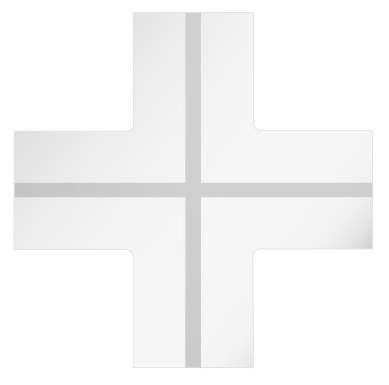 Elemento de unión en «X» compuesto por placa de yeso laminado GypsoARYA HD BA13 con perfil de aluminio extruido integrado, para la inserción de «barra LED», incluida pantalla protectora de 18 mm de ancho. Utilizar en interiores.
