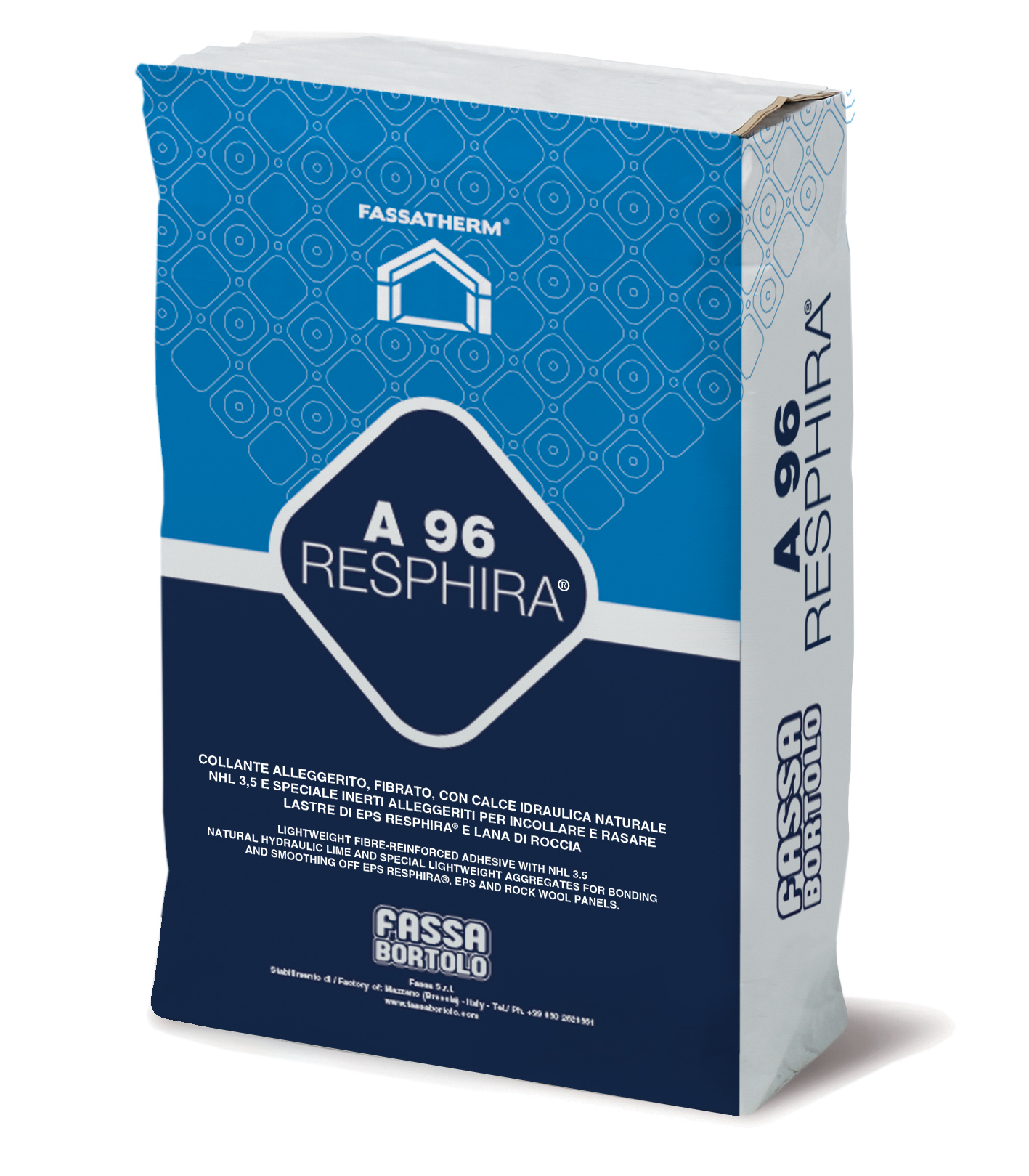 A 96 RESPHIRA se utiliza para pegar y enrasar placas de EPS RESPHIRA®, EPS, silicato de calcio y lana de roca en los sistemas de aislamiento por el exterior.