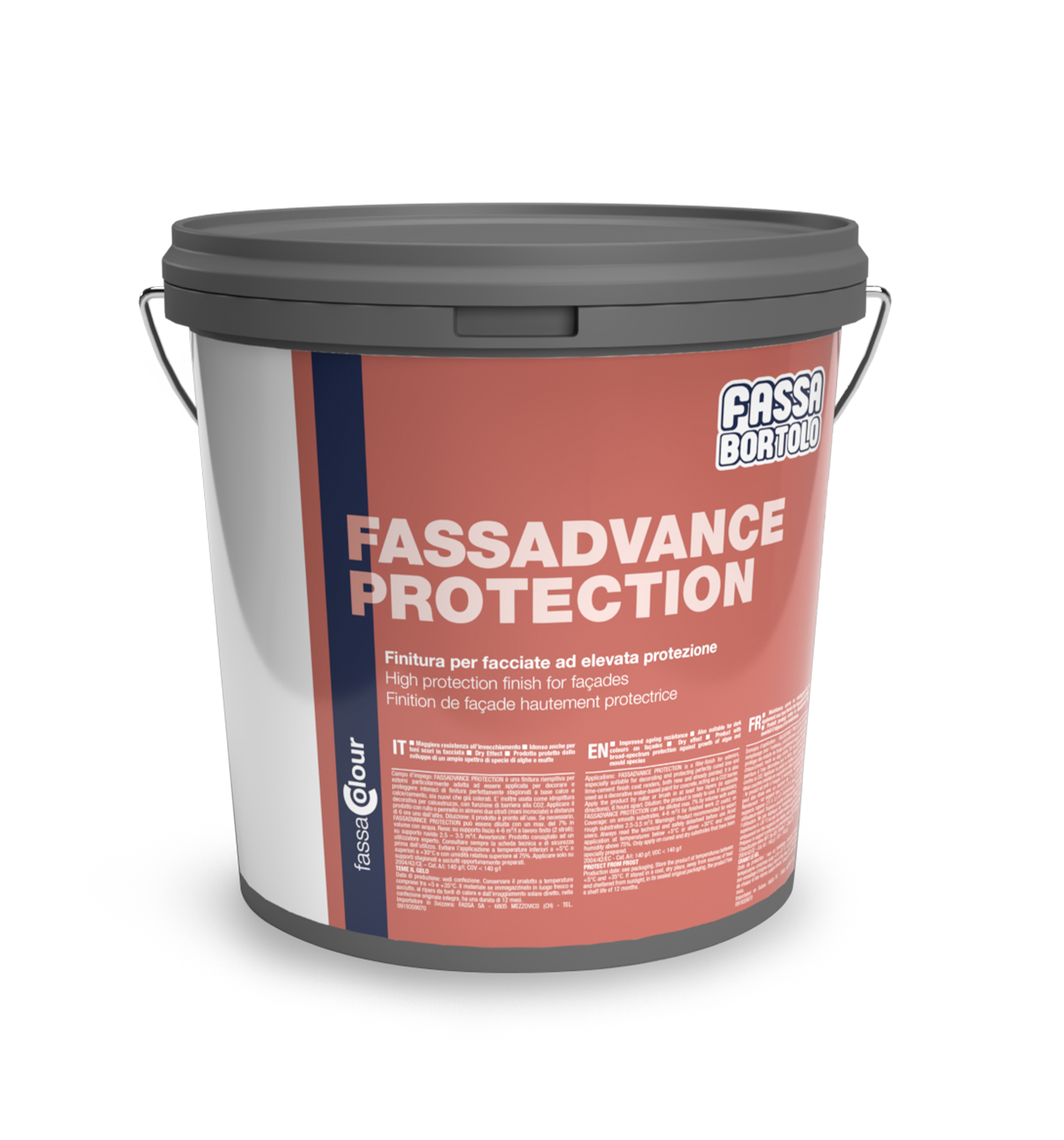 FASSADVANCE PROTECTION es un acabado sellador para exteriores particularmente adecuado para decorar y proteger enlucidos perfectamente madurados a base de cal y cal/cemento, tanto nuevos como pintados, siempre que estén sanos, firmes y sin fenómenos de humedad ascendente capilar. Gracias a su composición que aumenta la resistencia de la película al envejecimiento y la retención del color, el producto también es apto para la realización de tonos oscuros en fachadas. Tras la formación completa de la película, presenta una elevada repelencia al agua que permite un mejor drenaje del agua de la pared, mejorando así la protección del edificio.