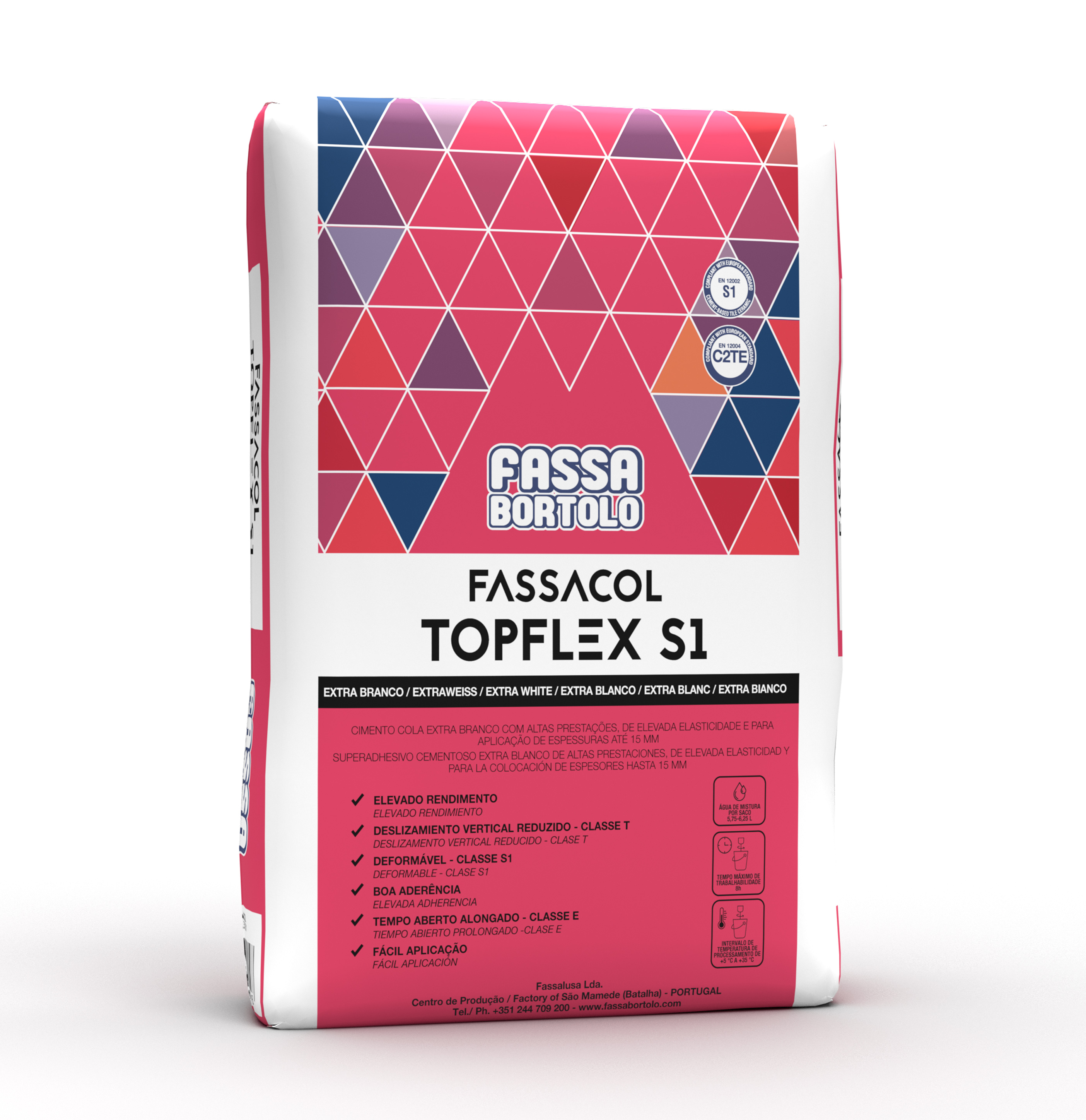 FASSACOL TOPFLEX S1#s#se aplica en interiores y exteriores en espesores de hasta 15 mm, en paredes y suelos, para la colocación de: