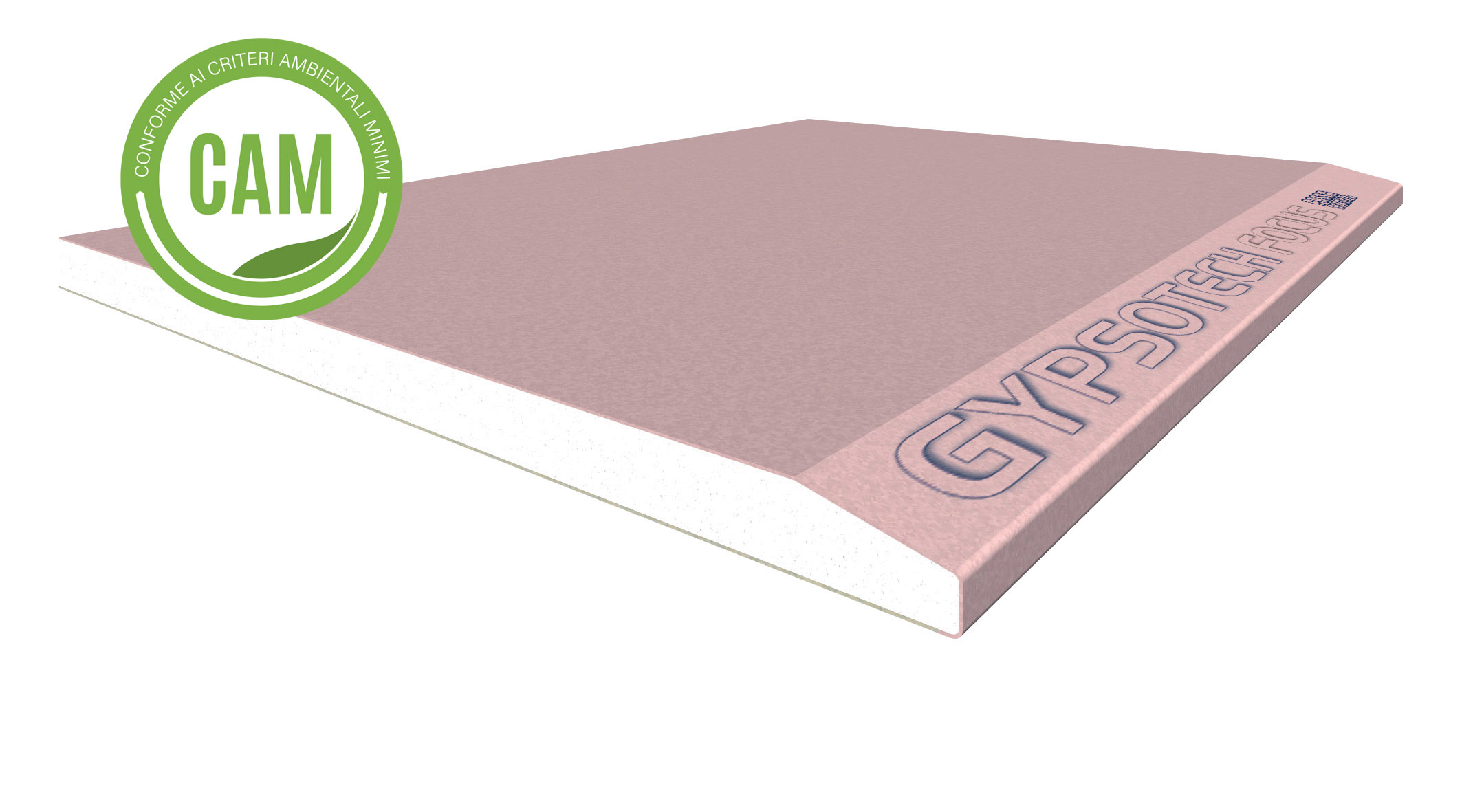 Placa (tipo DFI según Norma EN 520) con núcleo de cohesión mejorada contra el fuego, gracias a la presencia de aditivos especiales en el núcleo de yeso, fibra de vidrio y vermiculita.